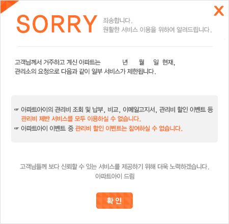 ȸ¿ø´ÔÀÇ ´ÜÁö °ü¸®»ç¹«¼Ò¿¡¼­ ¾ÆÆÄÆ®¾ÆÀÌ ¹«·áÁ¦°ø ȨÆäÀÌÁö¸¦ ¿î¿µÇÏÁö ¾ÊÀ» °æ¿ì, ÀÌ¿ë ½Ã ¾î·Á¿òÀÌ Àְųª ÀÌ¿ë ÀÚü°¡ ºÒ°¡ÇÒ ¼öµµ ÀÖ½À´Ï´Ù.